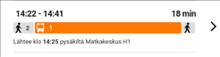 2. Reittiopas antaa samaisena torstaina seuraavan vuoron Matkakeskuksesta Jaalaan klo 14:28- 15:32: