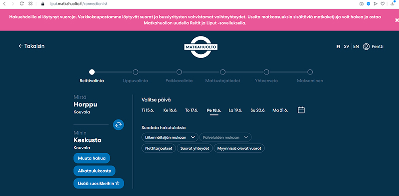 Bussi 5 ei näy Matkahuollon reittihaussa kesän osalta lainkaan. Pitääkö kesäaikataulunne paikkansa bussin 5 osalta matkalta Horppu - Kouvola Matkakeskus - Horppu?